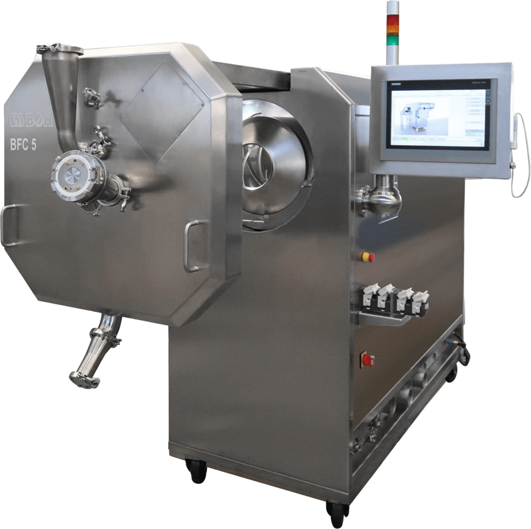 Der Laborcoater BFC 5 diente als Basismaschine für das Projekt. In einem zweiten Schritt konfigurierte L.B. Bohle den BFC als High-Containment-Tablettencoater.