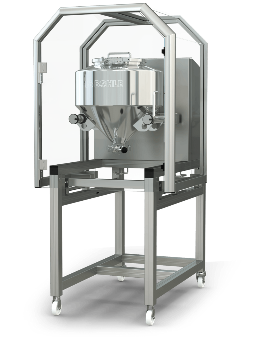 L.B. Bohle Mischsysteme wurden speziell zum homogenen Mischen von pharmazeutischen Feststoffen entwickelt. Das Mischverfahren basiert auf dem Einsatz von Mischelementen innerhalb des Mischcontainers. Das hierdurch erzeugte Gegenstromverfahren garantiert eine besonders schonende Durchmischung des Produktes bei relativ kurzen Mischzeiten und niedrigen Mischgeschwindigkeiten. Gleichzeitig verhindert das Gegenstromverfahren eine Kontaminierung der Bediener und des Produktes während des Prozessablaufes.
