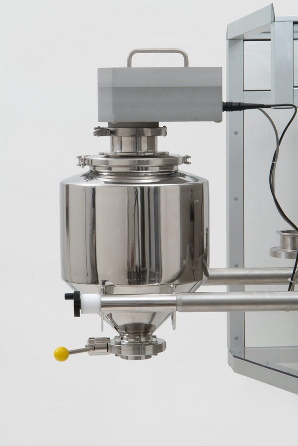 Standardmäßig werden Container mit Passrohren aufgenommen. Optional können auch eckige Behälter, Fässer, Doppelkonusbehälter, V-Shells und weitere Spezialcontainer verarbeitet werden.