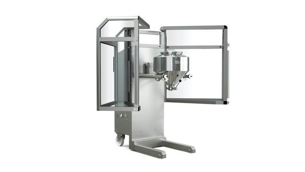 Ein optional erhältlicher mobiler Heber erlaubt ein komfortables und ergonomisches Handling aller Behälter. Labormischer ist somit ideal für den Einsatz in Entwicklungslaboren und Pilotanlagen. Dank der Rotation um nur eine Achse und der kleinen Stellfläche benötigt der LM 40 nur minimalen Raum und lässt sich somit optimal in bestehende Laborumgebungen integrieren.