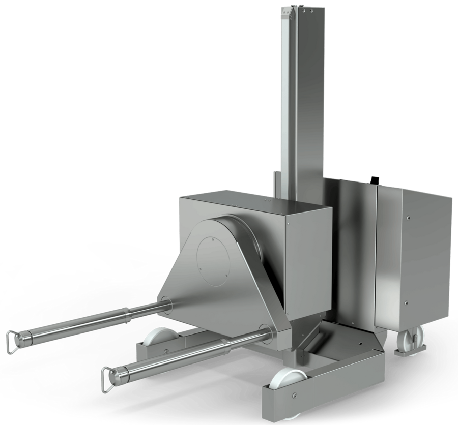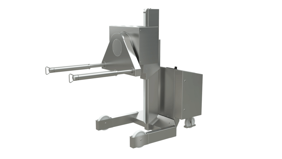 Das Herzstück bildet der Hubmast mit Außen- und Innenmast. Dank dieses Gleitmastprinzips ist eine GMP-gerechte, hygienische und wartungsfreundliche Bauweise sichergestellt. Der hydraulische Hubantrieb arbeitet mit einem Plungerzylinder, der lediglich einseitig mit Öl beaufschlagt wird, und ist mit einem leistungsstarken Hydraulikaggregat verbunden.