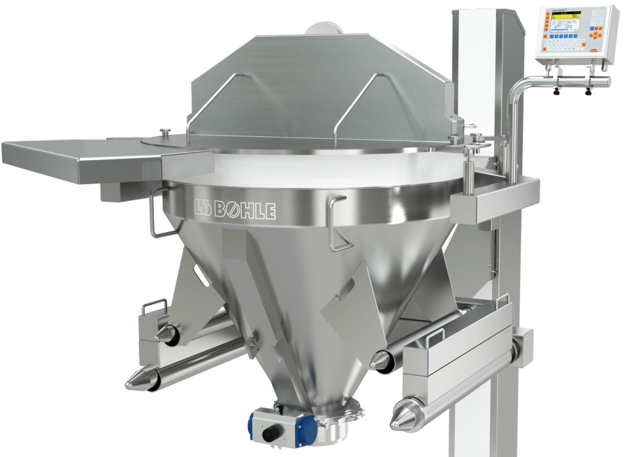 Das L.B. Bohle Einwaage-System ist eine Kombination aus einer Hubsäule sowie der Wägetechnik bestehend aus der Wiegebrücke und dem Wiegetrichter.