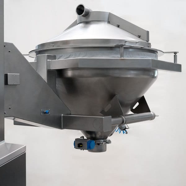 Fässer, Säcke oder Behälter können komfortabel und sicher, beispielsweise mit einer Handlinghilfe, entleert werden. Große Mengen werden bei Bedarf automatisch nach Rezept über den Schwenkarm in den Wägekonus oder Big-Bag dosiert. Das System überzeugt mit einem Wiegebehältervolumenvon 280 bis 450 Litern und einer Wägegenauigkeit von 50 bis 200 Gramm, abhängig von der Beladung. Optional kann eine staubfreie Klumpenbrechung, Kontrollsiebung oder eine Entstaubung direkt an der Austragsstelle integriert werden.