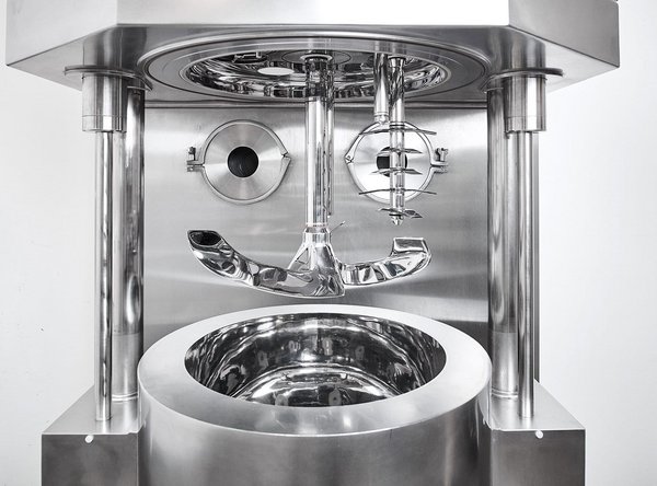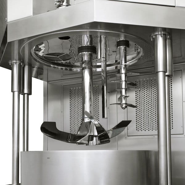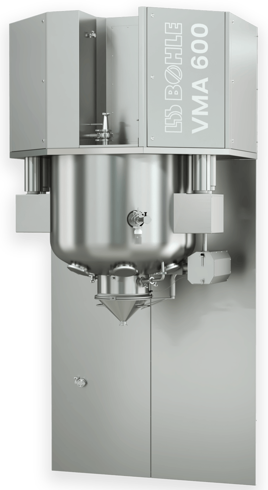 Die Produktreihe VMA umfasst typische Eintopfgranulierer mit Rühr- und Zerhackereinheit und einen Top-Drive-Antrieb. Zwei Rührer sorgen für die Scherwirkung und Produktauflockerung. Sie vermeiden eine Klumpenbildung und erzeugen hochwertige Granulate. Der GMP-konforme Prozessbehälter mit doppelter Ummantelung ist dabei das Herzstück des VMA.