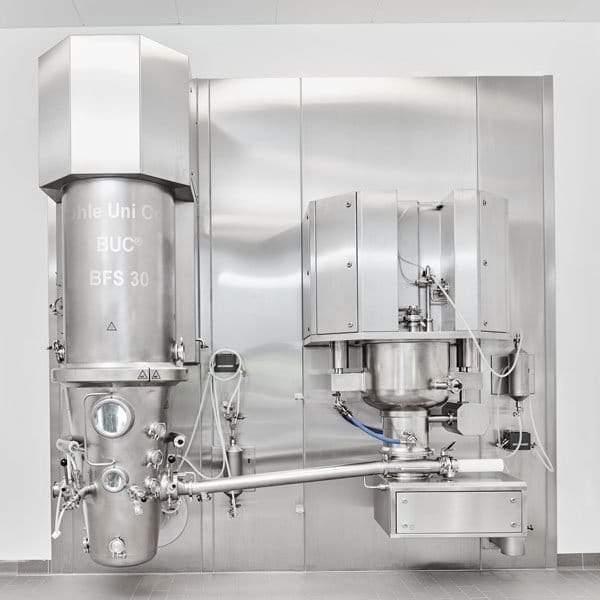 Die Bohle Uni Cone BUC® Technologie sorgt für eine vollständige Fluidisierung der Partikel und ein gleichmäßiges Befilmen. Das Ergebnis: höchste Produktqualität, kurze Reinigungszeiten dank WIP-System und eine ergonomische, wirtschaftliche Lösung zur Optimierung klassischer Feuchtgranulationsprozesse.