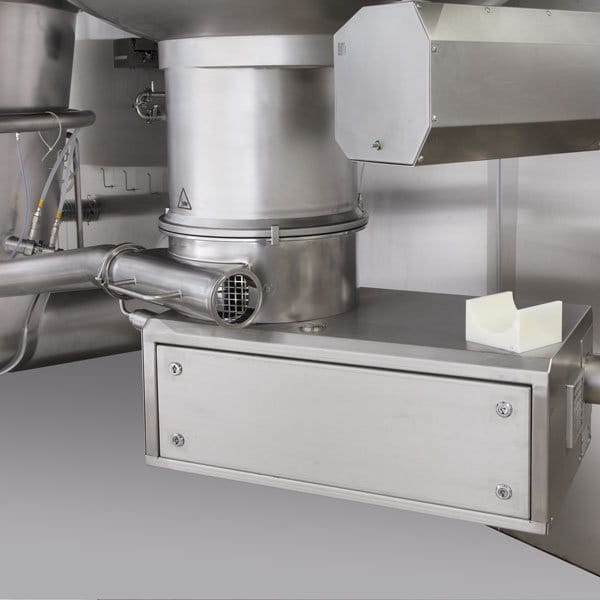 Ein direkter Produkttransfer erfolgt über eine geschlossene Edelstahlleitung vom GMA zum BFS. Zusätzlich integrierte Entleer- und Transferventile ermöglichen einen kontinuierlichen Prozessablauf ohne Umbauten, was Zeit spart und das Risiko von Kreuzkontaminationen minimiert.