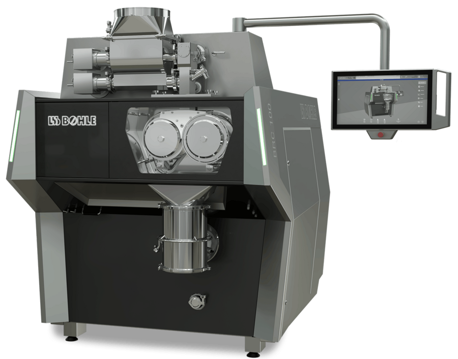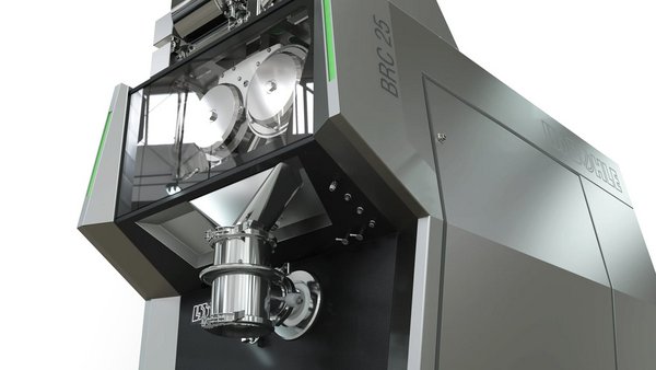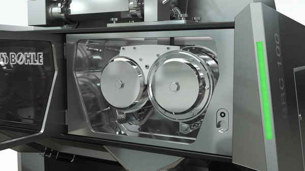 Der Trockengranulierer BRC regelt die Kompaktierkraft und Schülpendicke sehr innovativ und erzeugt eine gleichmäßige Kompaktierung des Materials. Dabei realisiert der Trockengranulierer BRC 100 eine Produktionsbandbreite von <1 - 400 kg/h.