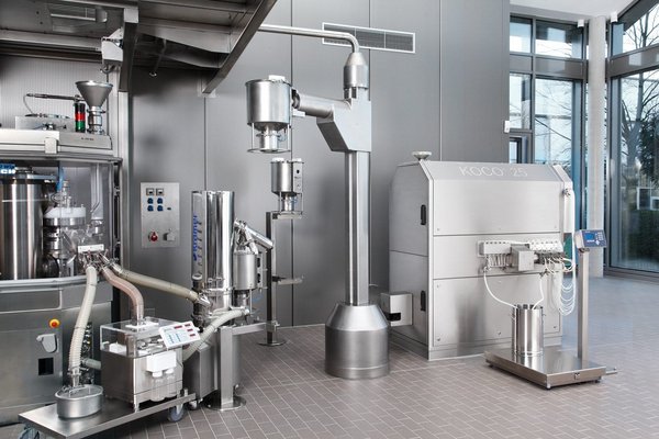 Für den Transport von Pulvern über längere Distanzen, auch zwischen Etagen, kommen vakuumgestützte oder druckluftbetriebene Fördersysteme zum Einsatz. Sie gewährleisten einen produktschonenden und verlustfreien Materialfluss. Die Förderung von Pulvern zwischen Stockwerken oder räumlich getrennten Produktionsbereichen und die automatisierte Beschickung von Mischern, Granulieranlagen oder Tablettencoatern sind Einsatzbereiche von Vakuumförderern.