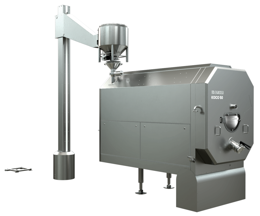 Ursprünglich für den Einsatz in der kontinuierlichen Produktion QbCon® entwickelt, kann der ROB 50 aber ebenso den Produkttransfer in der Chargenproduktion automatisieren und damit die Lücke zwischen Tablettenpresse und Tablettencoater schließen. Hierfür bietet L.B. Bohle Produktvarianten des ROB 50 für größere Behälter an.