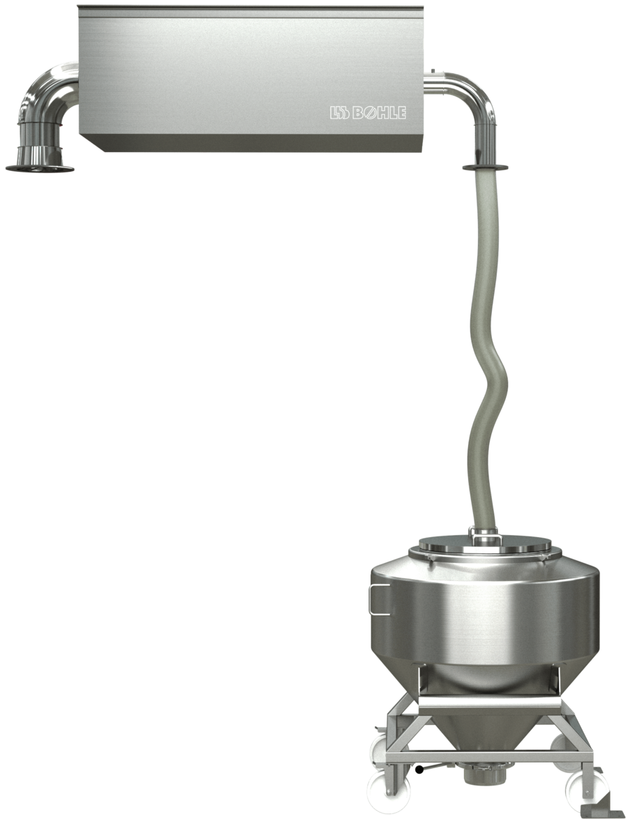 Die angesaugte Prozessluft (Pharmaluft) wird im Modul auf bis zu 60 °C erhitzt und über ein Prozessluftrohr mit Verbindungsschlauch gezielt in den Container geleitet. Der Adapterdeckel auf dem Container sorgt für eine präzise und kontrollierte Luftzufuhr – optimal für reproduzierbare und GMP-konforme Trocknungsprozesse.
