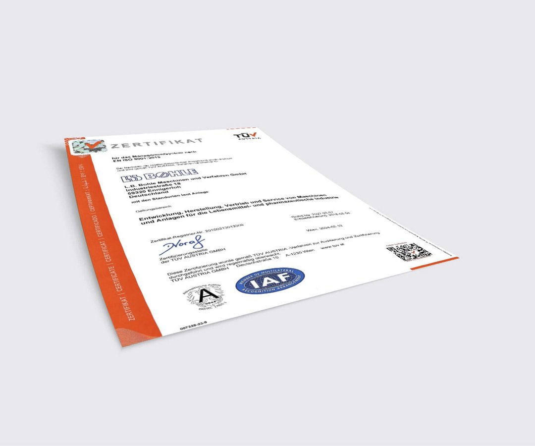 Verlässlichkeit, Sicherheit und Compliance – Zertifikate dokumentieren unsere Standards und unser Engagement: Unser Managementsystem ist nach DIN EN ISO 9001:2015, DIN EN ISO 14001:2015 und DIN EN ISO 50001 zertifiziert; der Arbeitsschutz erfüllt DIN ISO 45001:2018. Für maximale Sicherheit in explosionsgefährdeten Bereichen verfügen wir über ein EX-Zertifikat. Als „Bekannter Versender“ (LBA) sorgen wir zudem für geprüfte, reibungslose Lieferketten.
