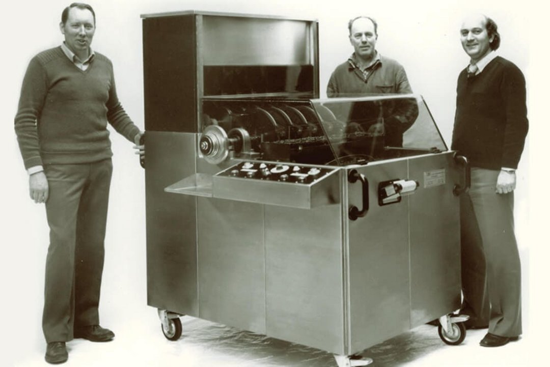 Dipl.-Ing. Lorenz Bohle gründet nach langjähriger Tätigkeit als technischer Leiter in einem pharmazeutischen Unternehmen als Konstrukteur für Spezialmaschinen seine eigene Firma im Ennigerloher Ortsteil Westkirchen. Als erstes entwickelt er den Tablettenchecker KA. Von Beginn an dabei ist der heutige Betriebsleiter Robert Stauvermann.